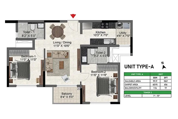 • Size: 1067 Sqft