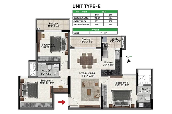 The residential enclave offers spacious and thoughtfully designed 2, 3, and 4 BHK apartments, each crafted with high-end finishes and modern features to suit contemporary lifestyles. Every home is planned to provide comfort, functionality, and a sense of refinement, making it ideal for families and professionals alike.