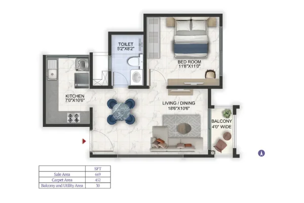 • Size: 669 Sqft