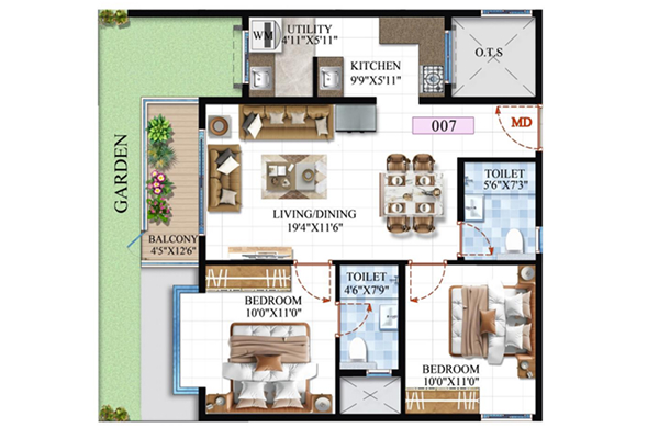 • Size: 727 Sqft